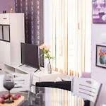 Studio Violet Apartment разполага с балкон и разпределителна зона, оборудвани със звукоизолирани прозорци и модерни удобства като бърз интернет и телевизор. Банята разполага с отделен тоалет и душ, а също така се предоставят и сешоар и хавлии.
